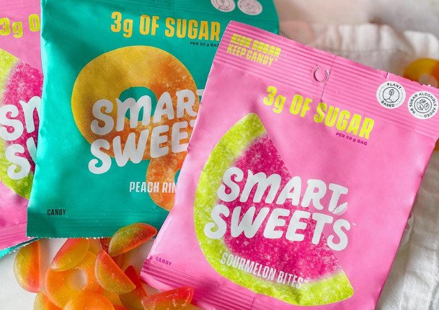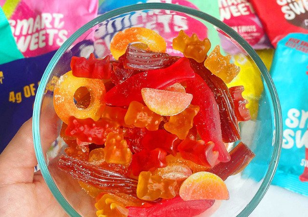 Great question. Since many people have adverse reactions to artificial sweeteners like xylitol, erythritol, and other things that don’t sound like they should be in food, Smart Sweets prides themselves on replicating the sugary-taste of corn syrup with natural ingredients. Think stevia, tapioca fiber, chicory root, and natural fruit flavors.