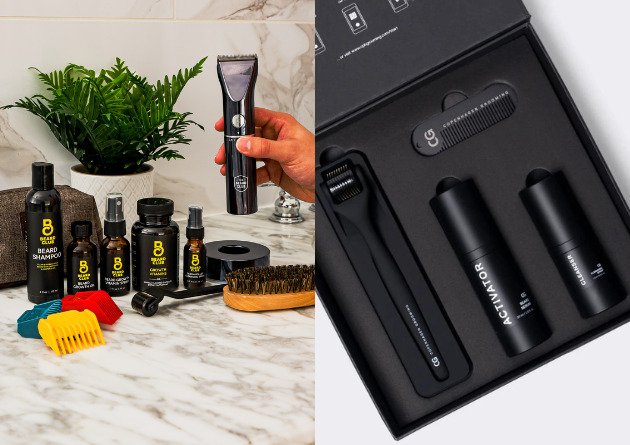 The Starter Kit includes beard growth oil, a facial derma-roller to stimulate hair follicles, cleansing spray for the roller, and beard-growth multi-vitamins to help promote growth from the inside-out. If you’re looking to level-up with beard shampoo, beard growth vitamin spray, and a brush—those are included in the Advanced Kit. And for those seeking a growth and grooming experience, the Ultimate Kit extends the offering with a top-of-the-line beard trimmer and a convenient bag to hold everything.