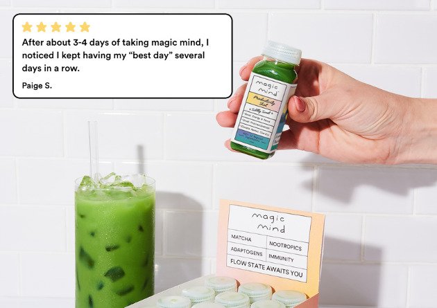 Magic Mind is a brand that’s all about unleashing your inner productivity beast. They’re on a mission to help us all overcome burnout and find our focus in a world that’s constantly pulling us in a million different directions. Their 2-oz shot is like a miracle potion that packs seven hours of laser focus, clarity, and mental energy into one teeny bottle, for as low as $3.25 per shot. Intrigued? You should be.